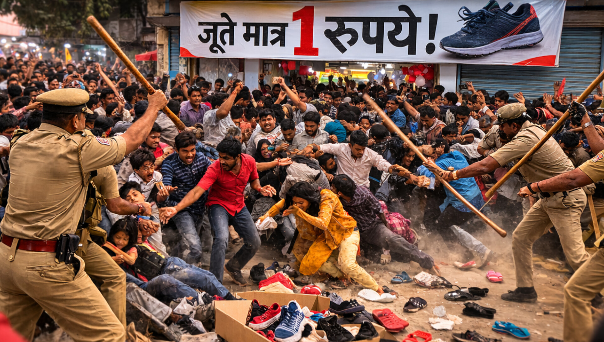 1 रुपये के जूतों का ऑफर पड़ा भारी, उमड़ी बेकाबू भीड़ पर पुलिस ने किया लाठीचार्ज