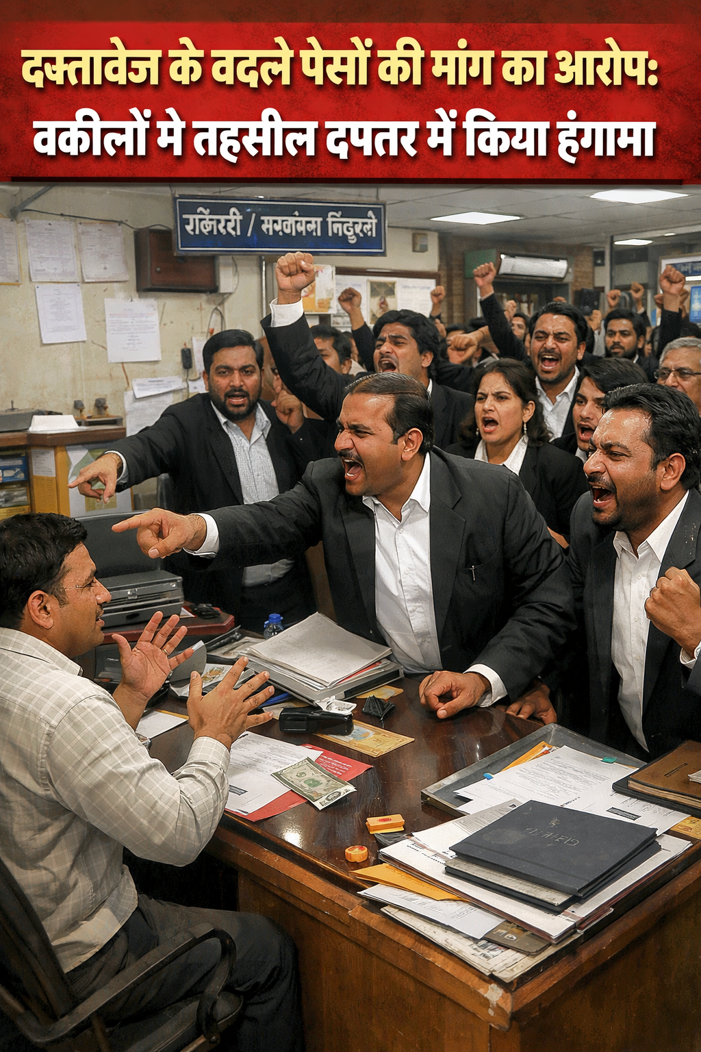 View Allदस्तावेज के बदले पैसों की मांग का आरोप: वकीलों ने तहसील दफ्तर में किया हंगामा